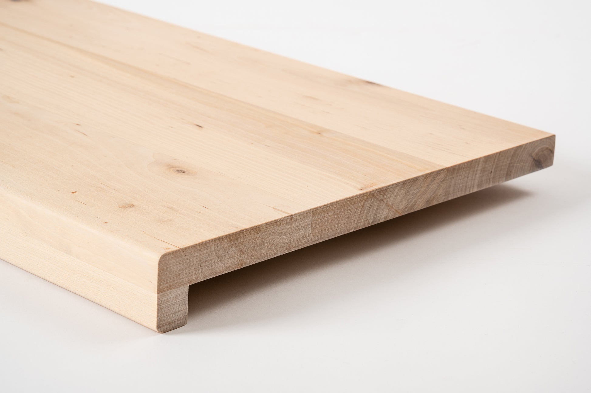 Stair tread Windowsill with overhang Birch Rustic, full stave lamellas, 20 mm, White oil