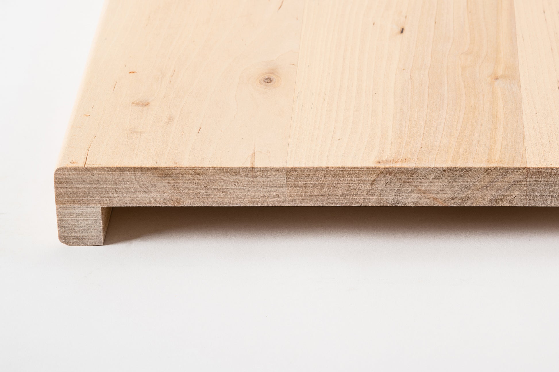 All boards are produced in-house and available in various thicknesses, edge profiles, and finishes — oiled, lacquered, or waxed. Custom dimensions can be made to order for specific projects.