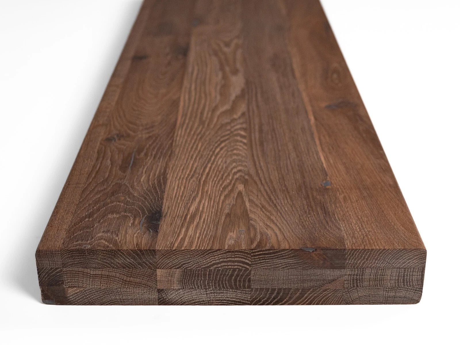 Fabriqué à partir de chêne fumé massif de première qualité en classe rustique, ce produit est idéal pour une utilisation comme marche d'escalier ou appui de fenêtre. Son caractère naturel riche, avec ses nœuds apparents, ses variations de grain et ses tons chauds de chêne, apporte un charme intemporel et une authenticité à tout intérieur.