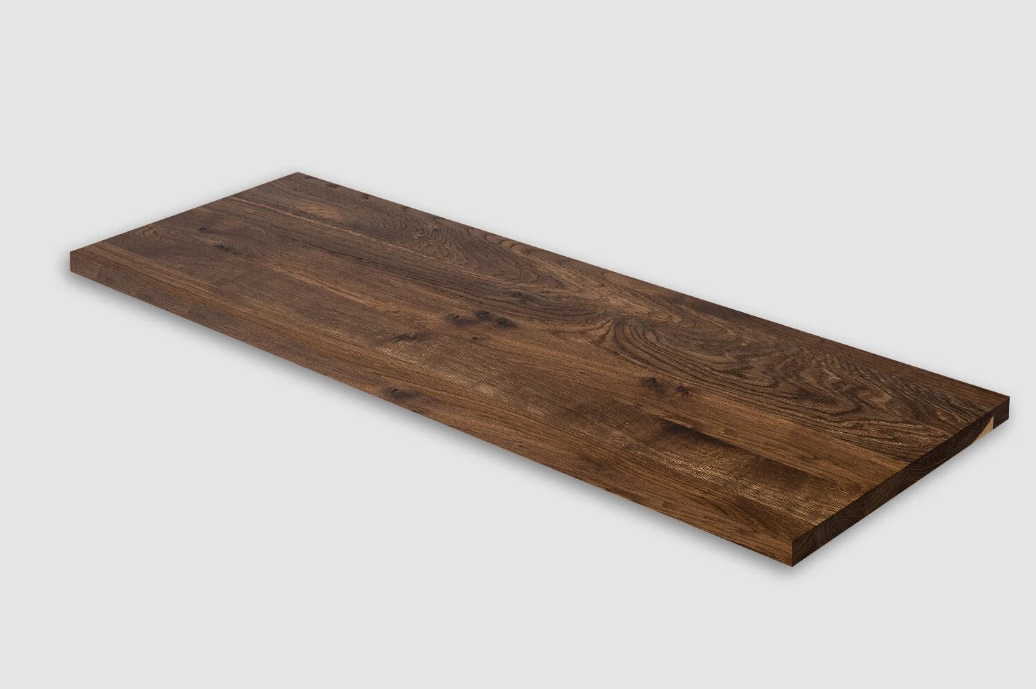 Etagère Marche d'escalier Rehausseur Appui de fenêtre Chêne rustique fumé, lamelles entières, 26 mm, laqué mat