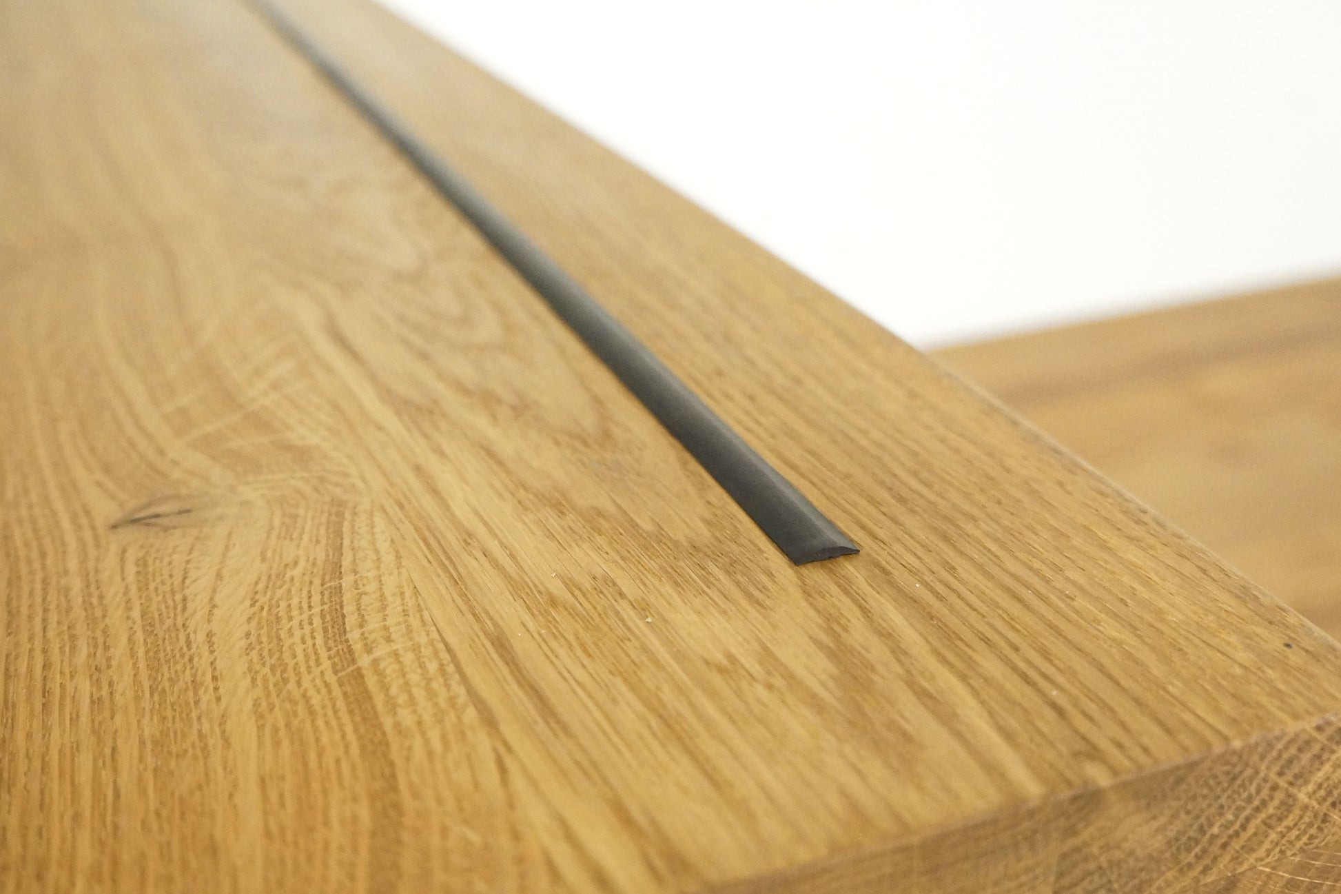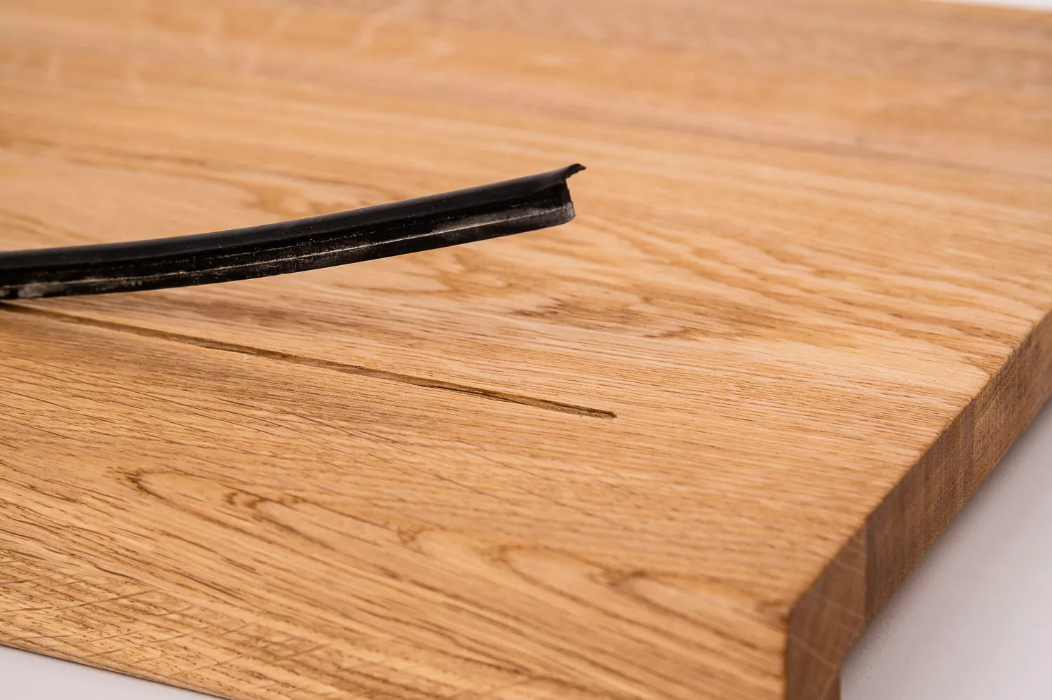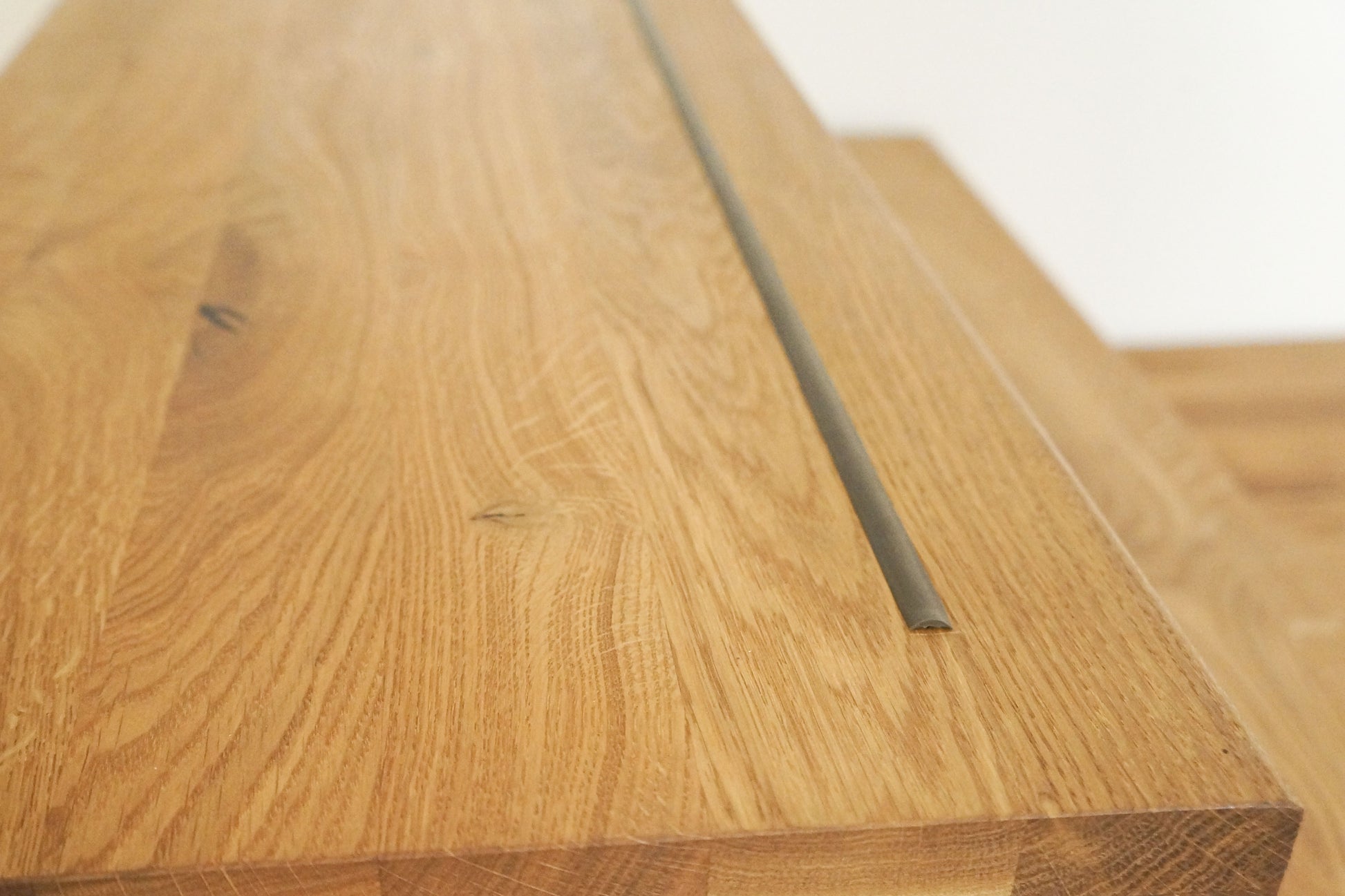 Solid oak stair tread with anti-slip rubber lip – where natural beauty meets safety.