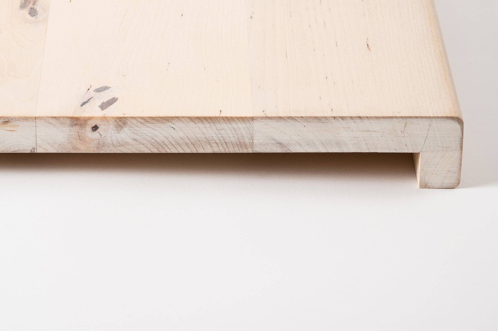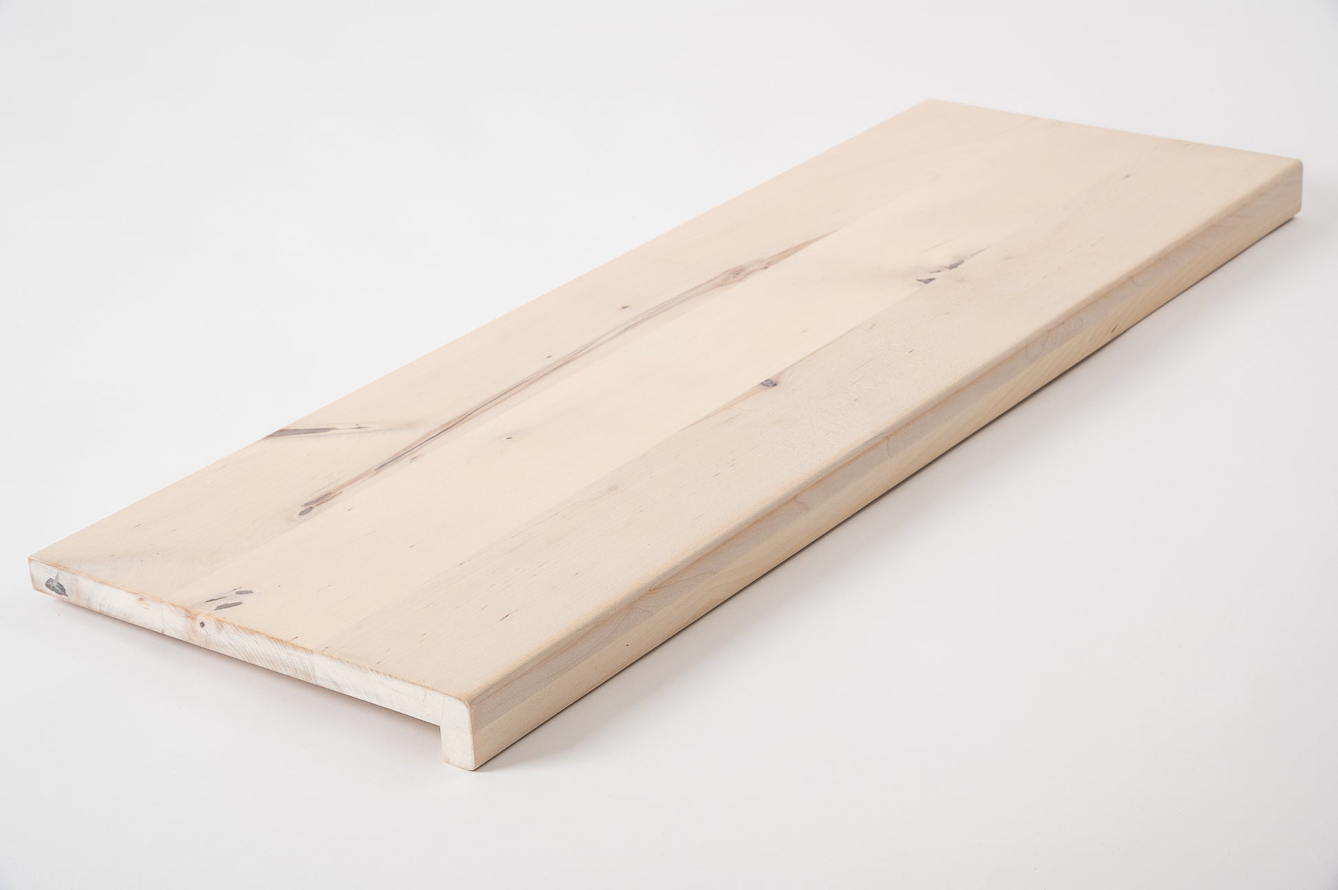 Marche d'escalier Appui de fenêtre avec surplomb Bouleau Rustique, lamelles entières, 20 mm, huile blanche craie