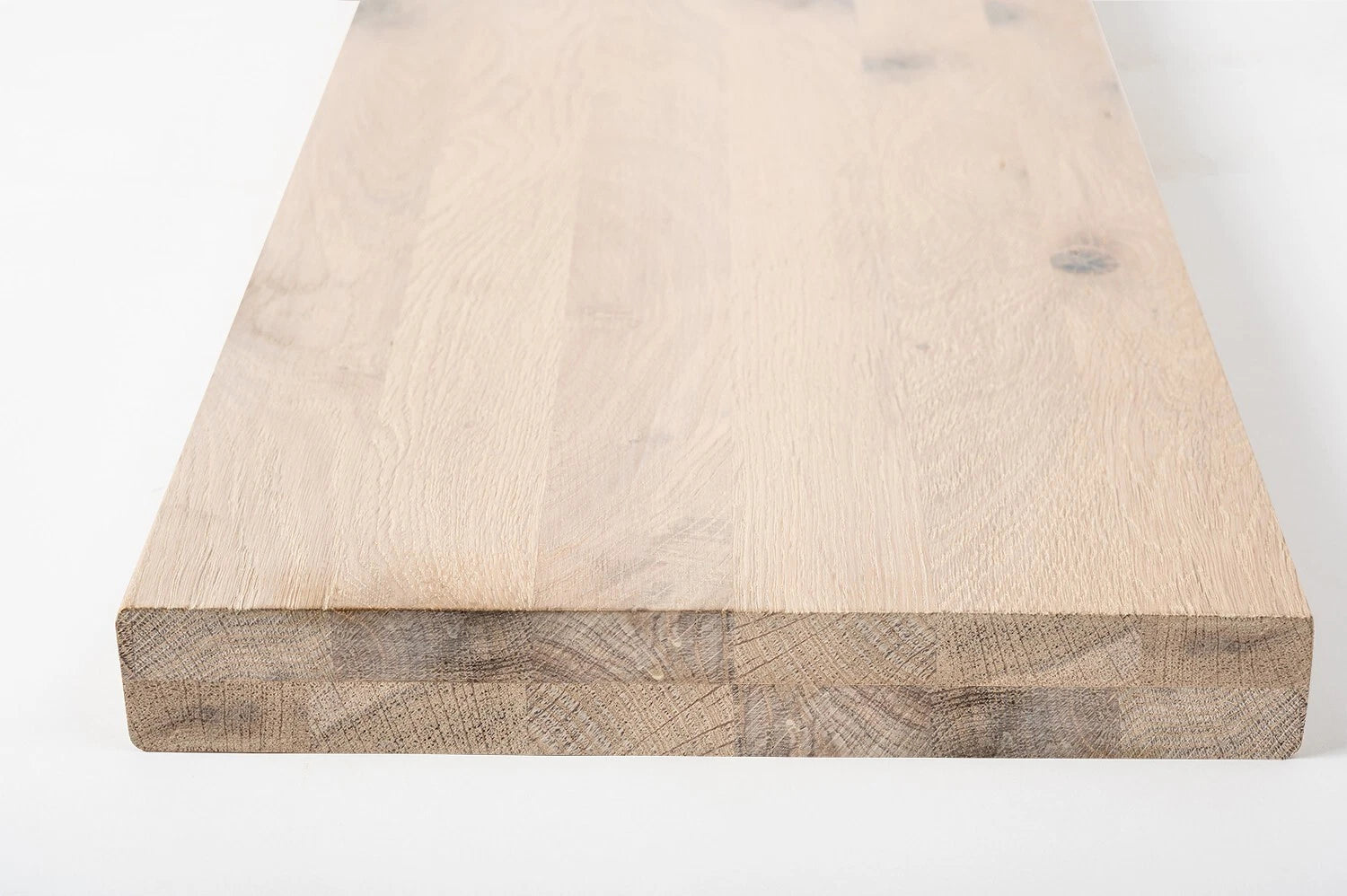Etagère Marche d'escalier contremarche Appui de fenêtre Chêne rustique, lamelles entières, 35 mm, 2 couches, brossé, huile blanche crayeuse