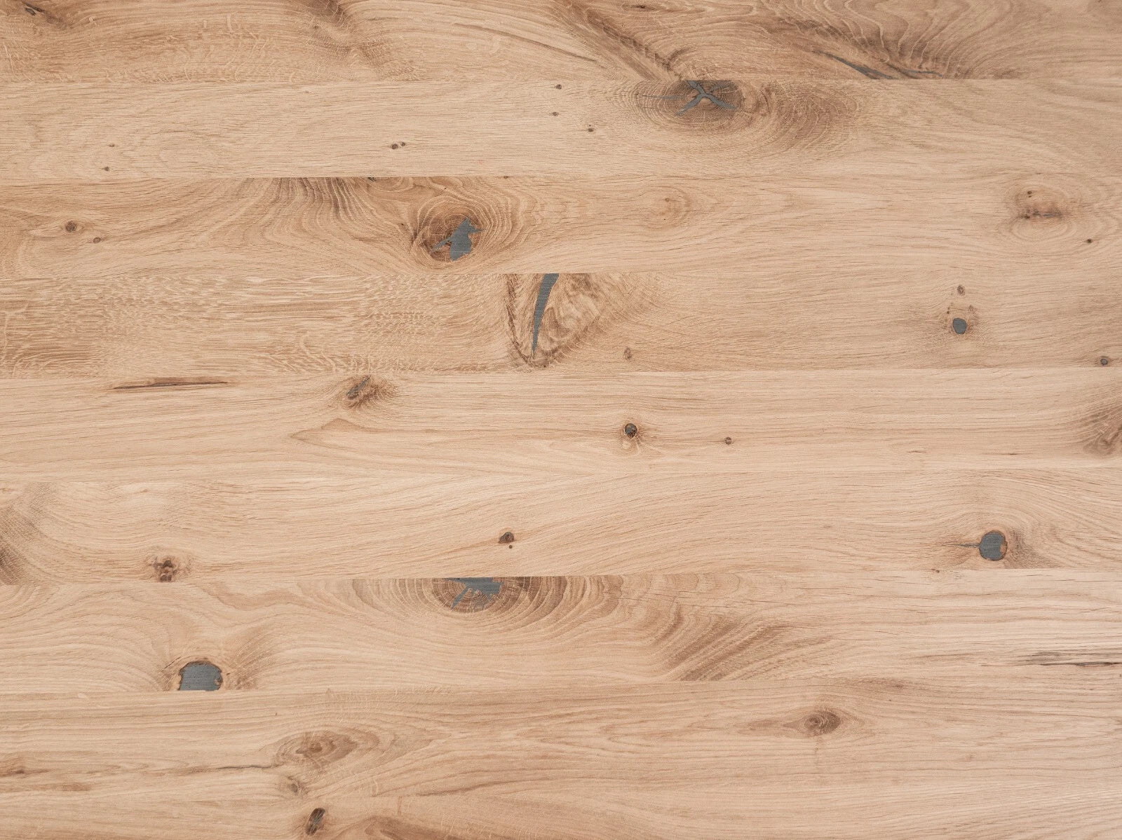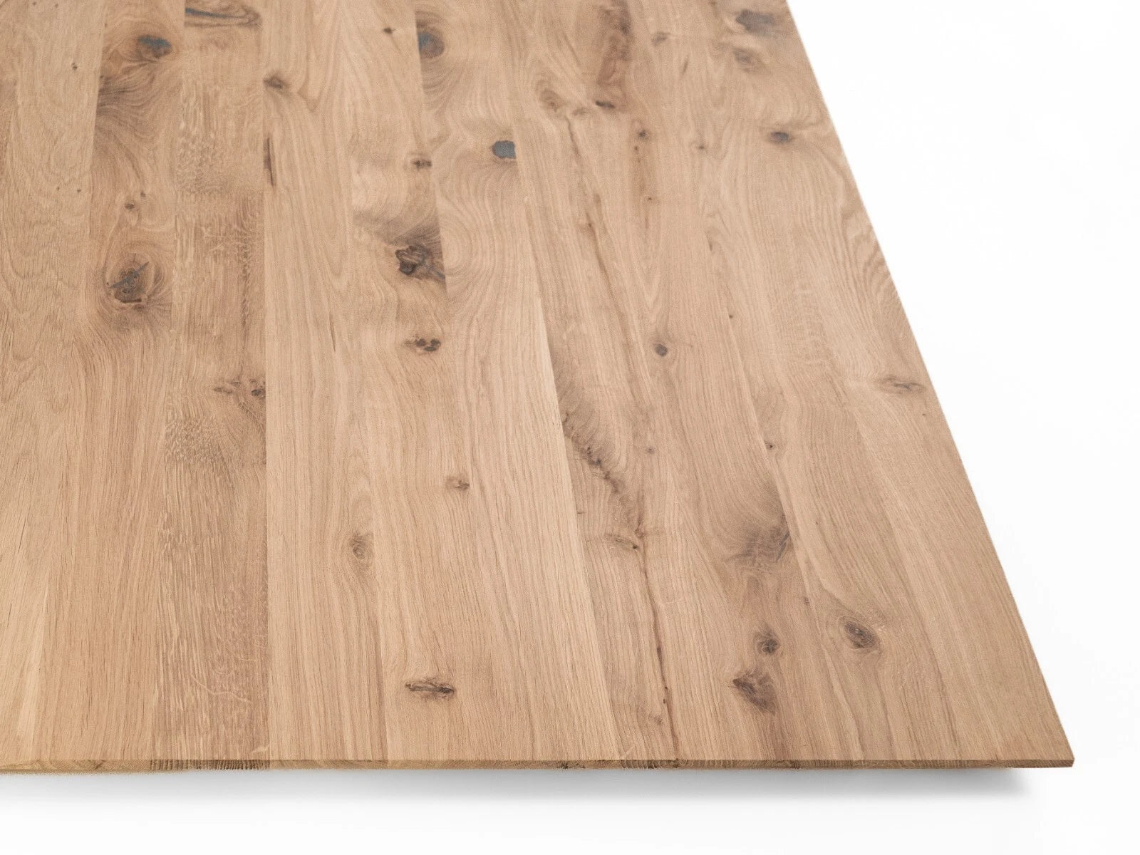 Plan de travail rectangulaire Chêne rustique, lamelles entières, 52 mm, 3 couches, huilé à la cire dure Naturelle Blanc