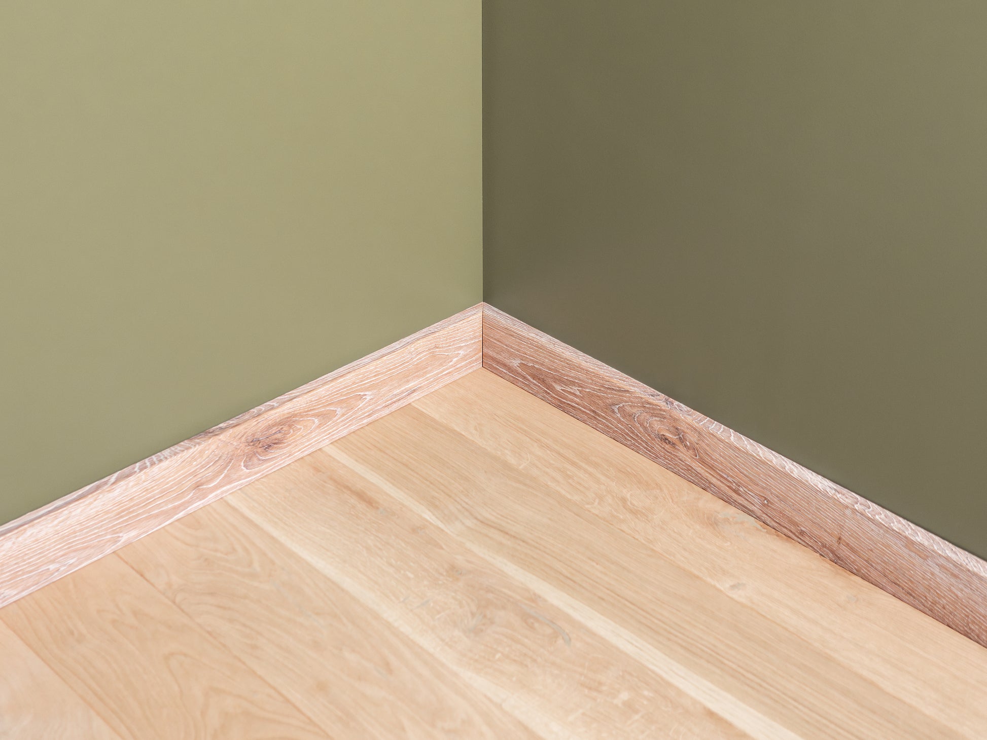 Crafted from premium solid oak in rustic grade, our skirting board is a refined finishing element for any interior, adding warmth, depth, and continuity to your space. The natural oak surface features beautifully expressive knots, subtle cracks, and vibrant grain patterns that celebrate the authentic character of the wood.