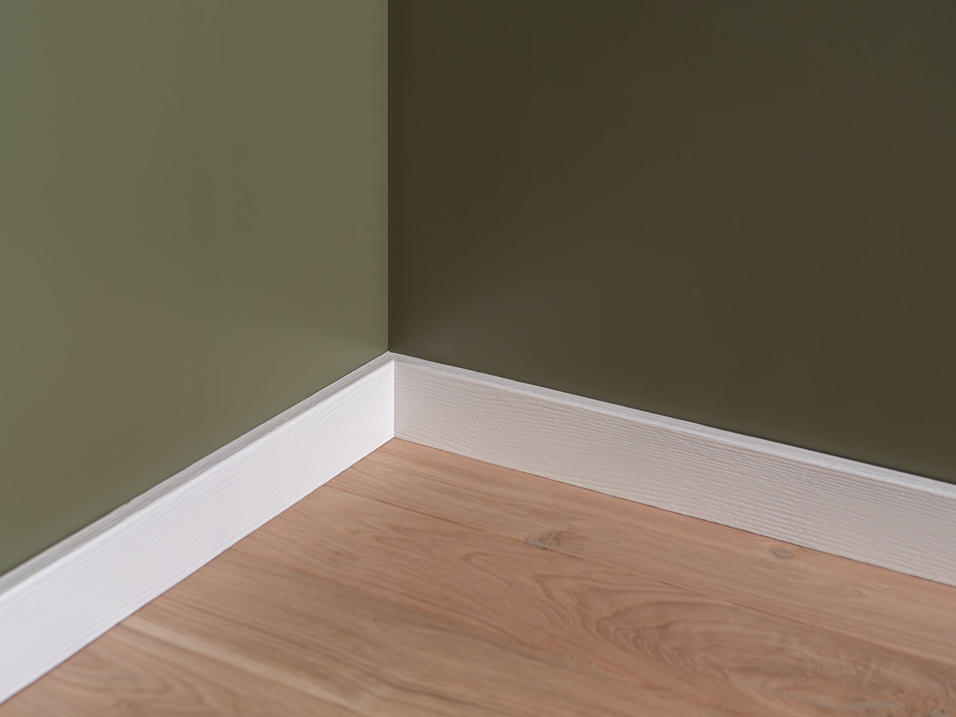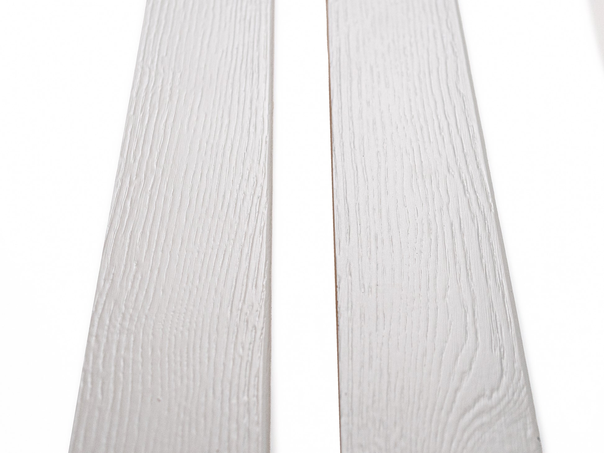 Plinthe en chêne massif rustique, 18 x 70 x 2000 mm, avec rayon, peinte en blanc, remplie, brossée