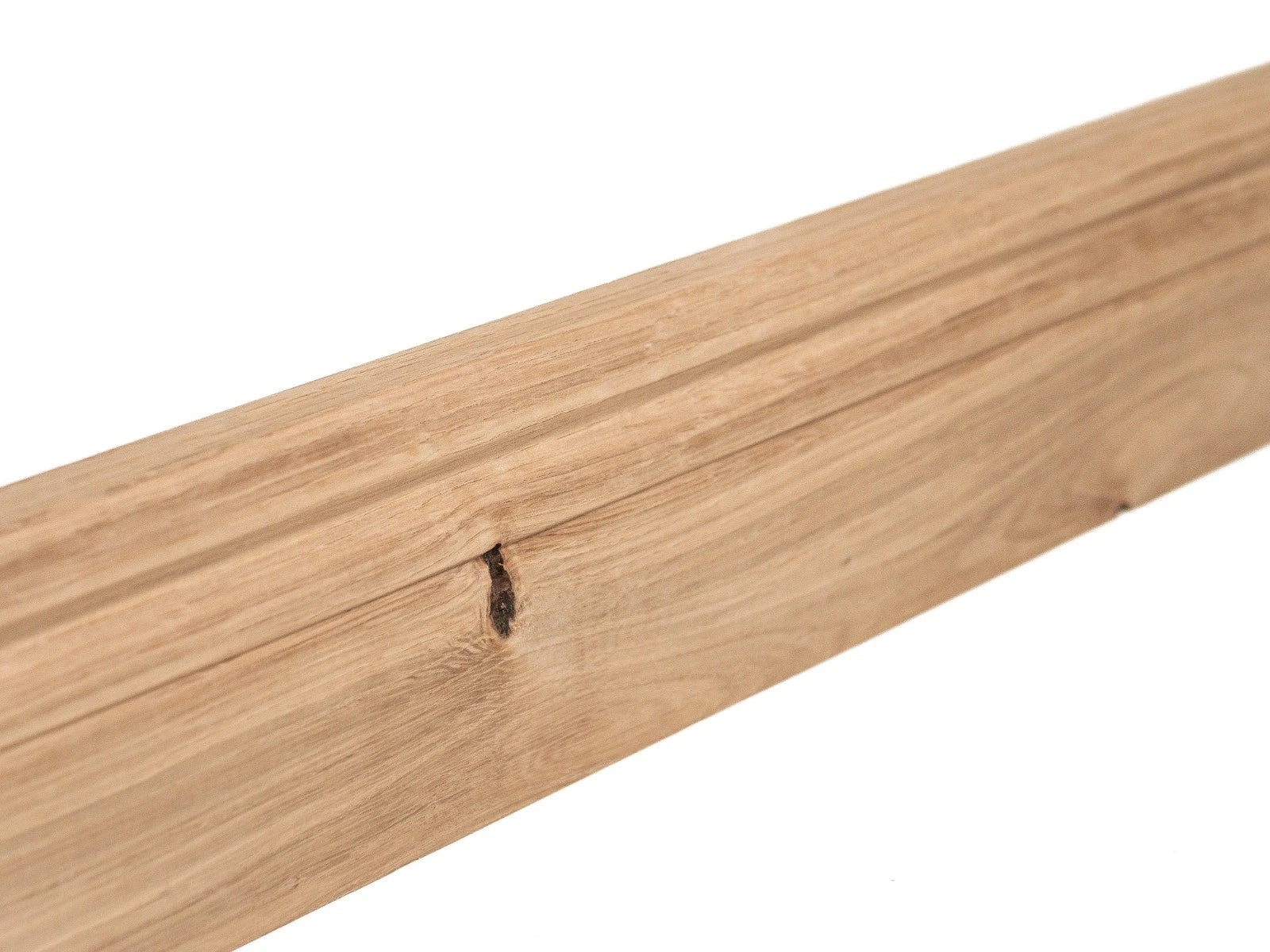 Crafted from premium solid oak in rustic grade, our skirting board is a refined finishing element for any interior, adding warmth, depth, and continuity to your space. The natural oak surface features beautifully expressive knots, subtle cracks, and vibrant grain patterns that celebrate the authentic character of the wood.