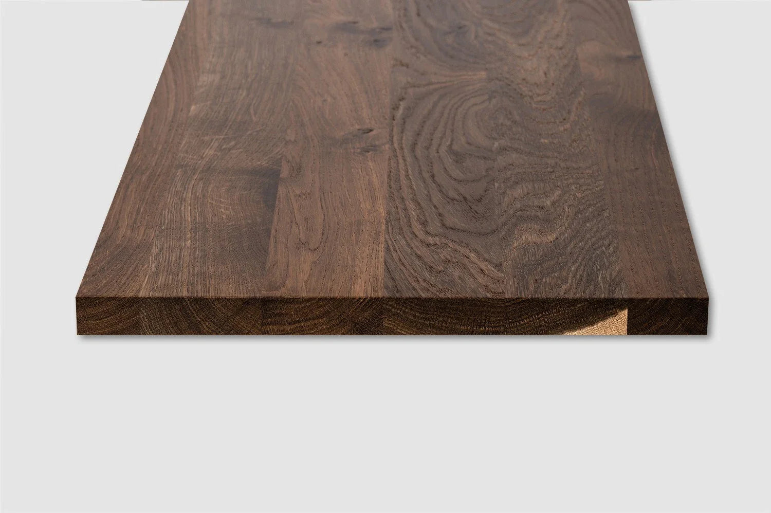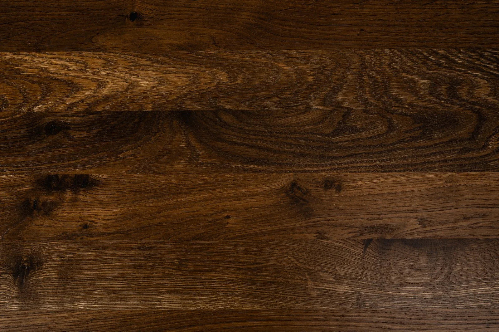 This product is made from solid oak in Rustic grade, carefully smoked to achieve a deep, natural brown tone with rich color variations. The full stave construction, made of long, continuous lamellas, highlights the oak’s grain structure and gives the surface a smooth, seamless look. Each board is unique, combining the warmth of real wood with the strength of solid oak.
