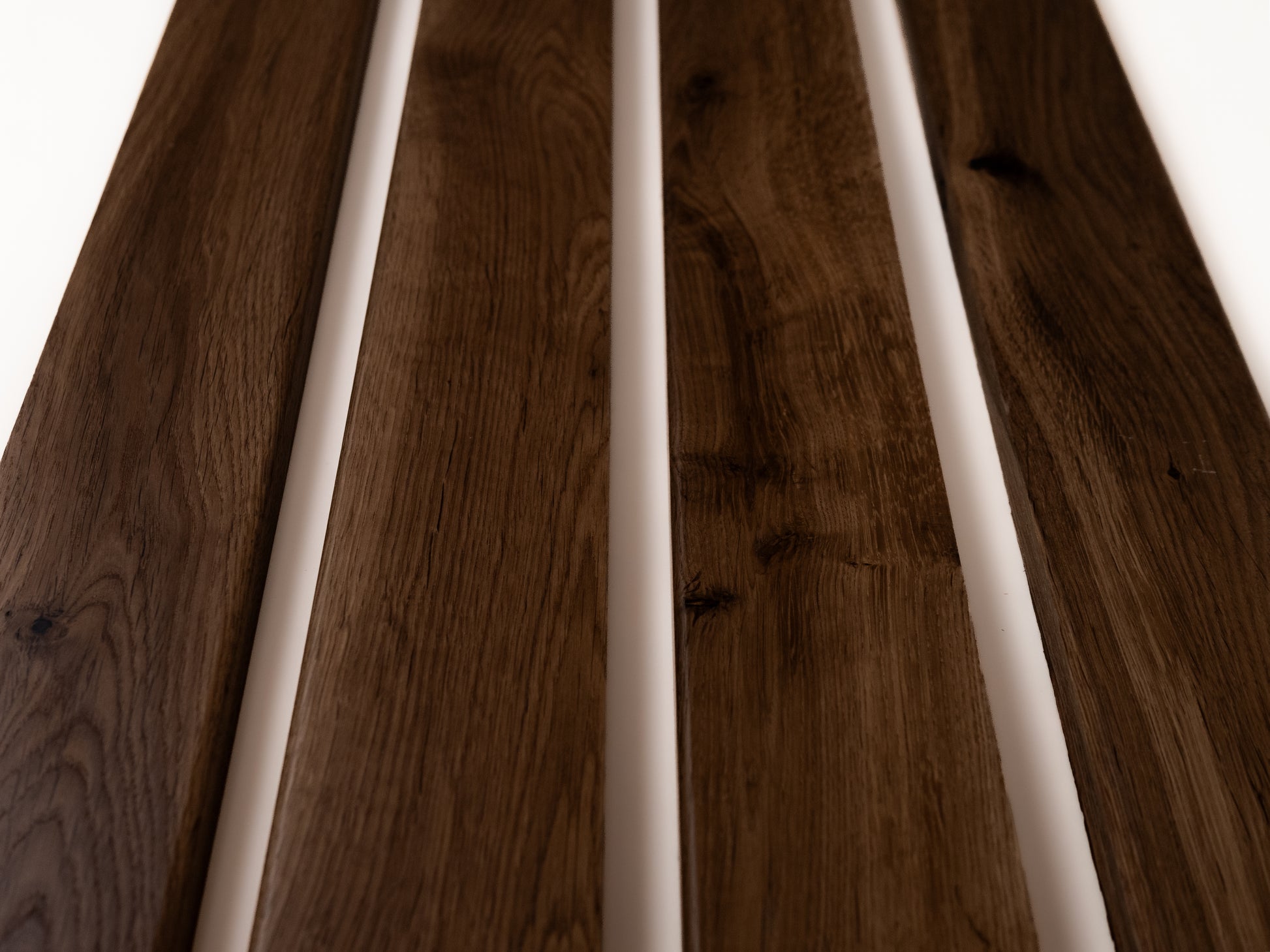 Crafted from premium solid smoked oak in rustic grade, our skirting board is a refined finishing element for any interior, adding warmth, depth, and continuity to your space. The natural oak surface features beautifully expressive knots, subtle cracks, and vibrant grain patterns that celebrate the authentic character of the wood.