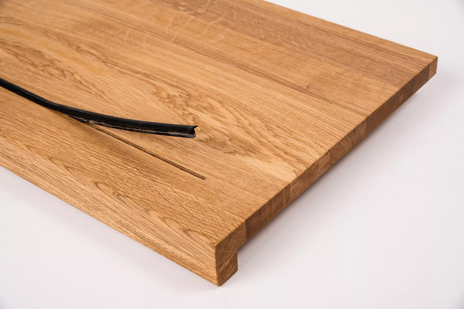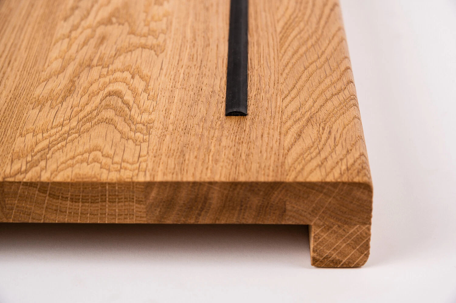Solid oak stair tread with anti-slip rubber lip – where natural beauty meets safety.