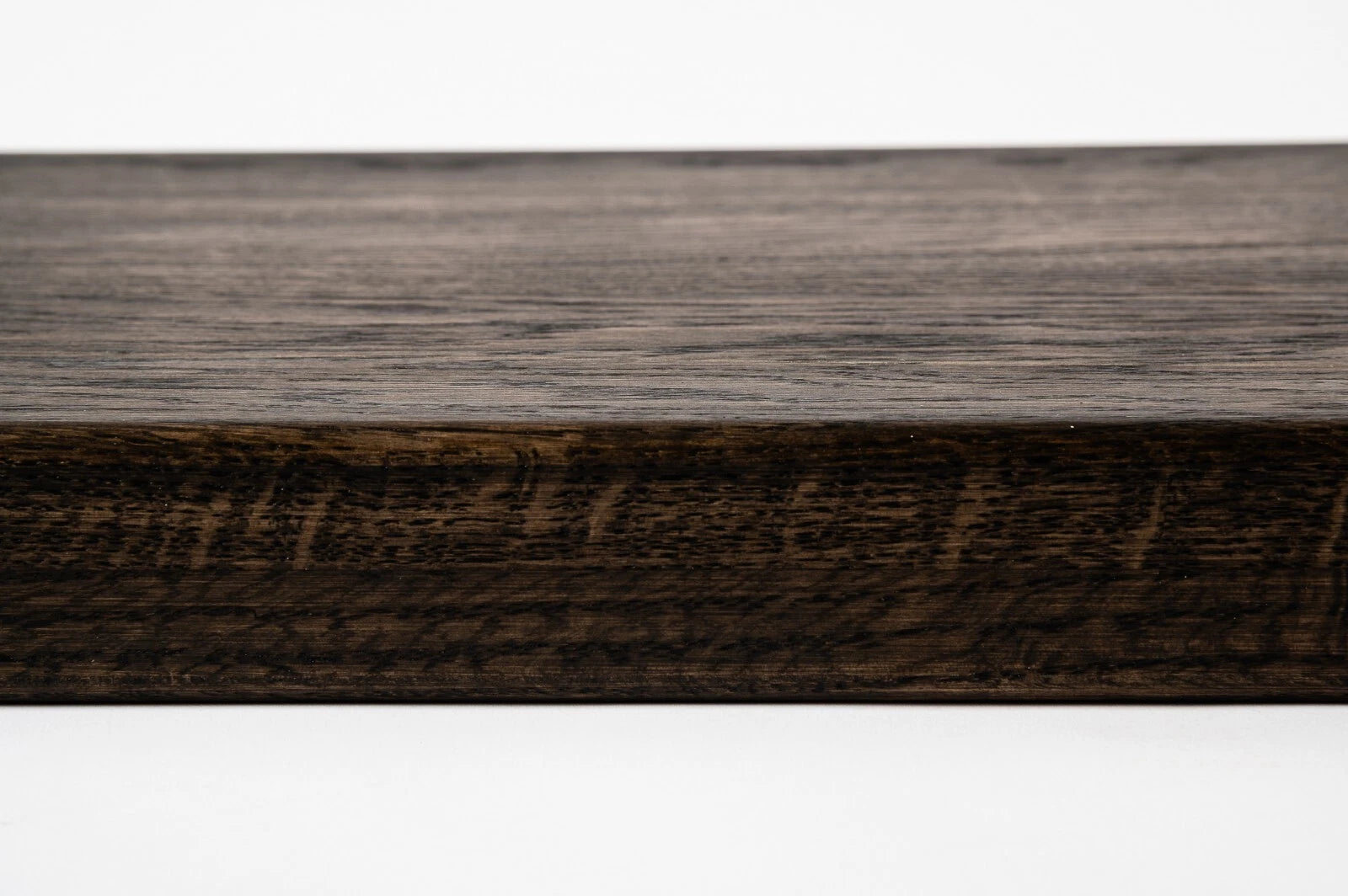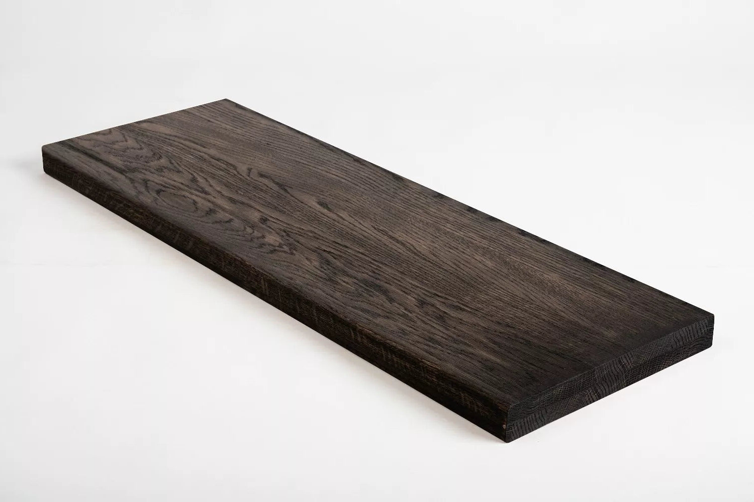 Shelf Stair tread Riser Windowsill Oak Rustic, full stave lamellas, 35 mm, 2-layer, Black oil