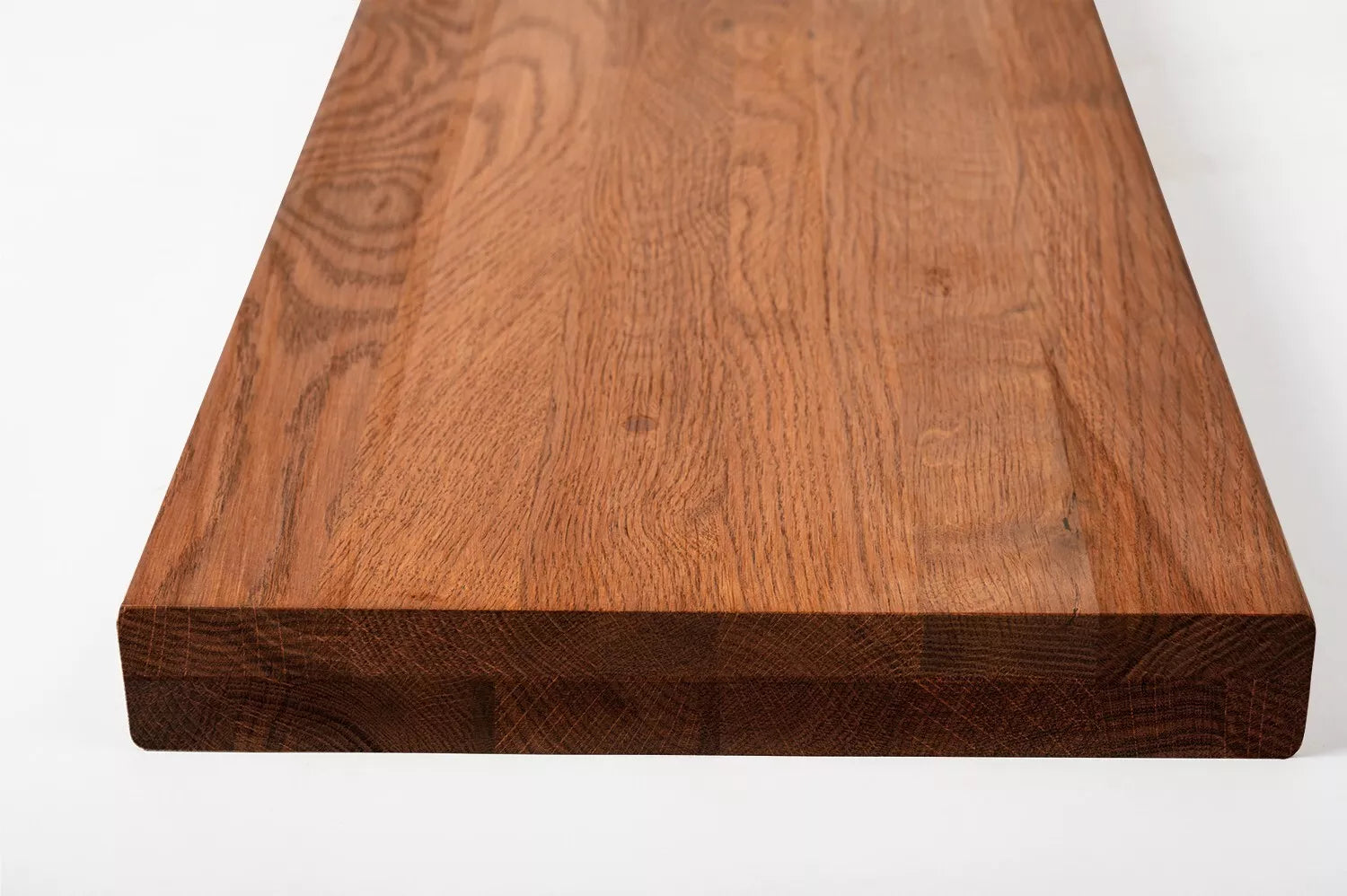 All boards are produced in-house and available in various thicknesses, edge profiles, and finishes — oiled, lacquered, or waxed. Custom dimensions can be made to order for specific projects.