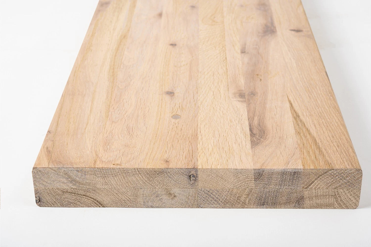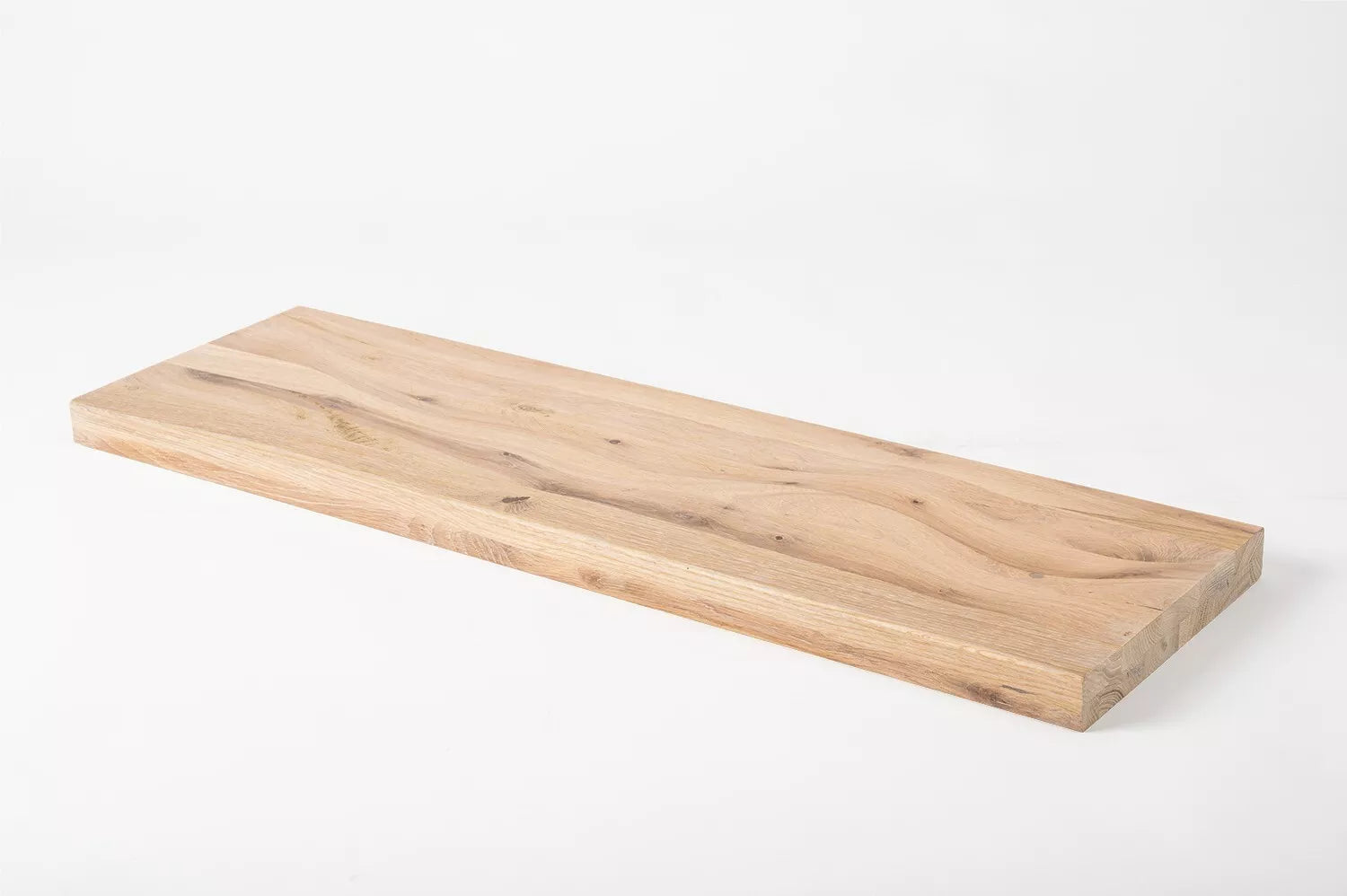 Rustic oak means that natural features such as visible knots, filled imperfections, and shade differences are intentionally preserved. This grade highlights the authentic side of oak — warm, organic, and full of contrast. It’s ideal for stair treads, windowsills, shelves, or furniture where you want both durability and a genuine wood appearance.