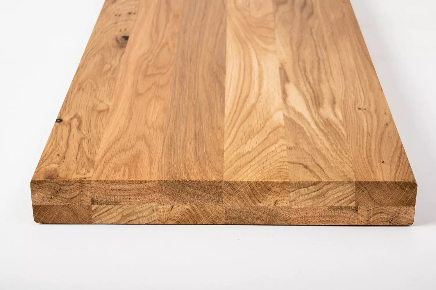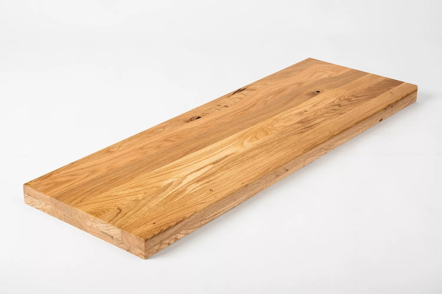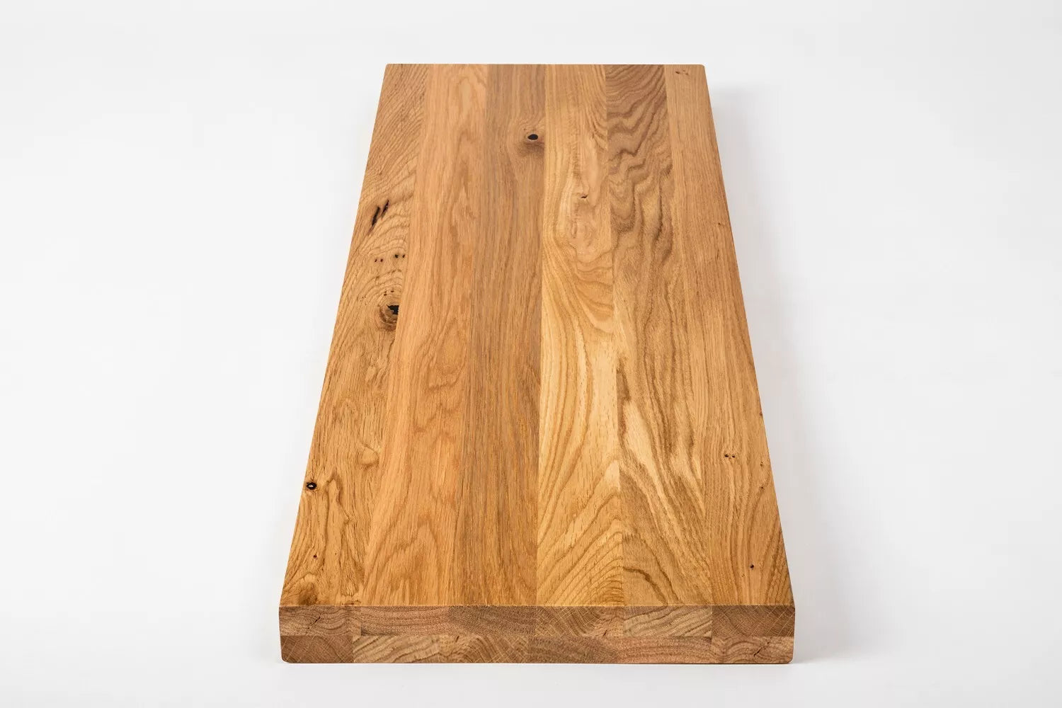 Rustic oak means that natural features such as visible knots, filled imperfections, and shade differences are intentionally preserved. This grade highlights the authentic side of oak — warm, organic, and full of contrast. It’s ideal for stair treads, windowsills, shelves, or furniture where you want both durability and a genuine wood appearance.