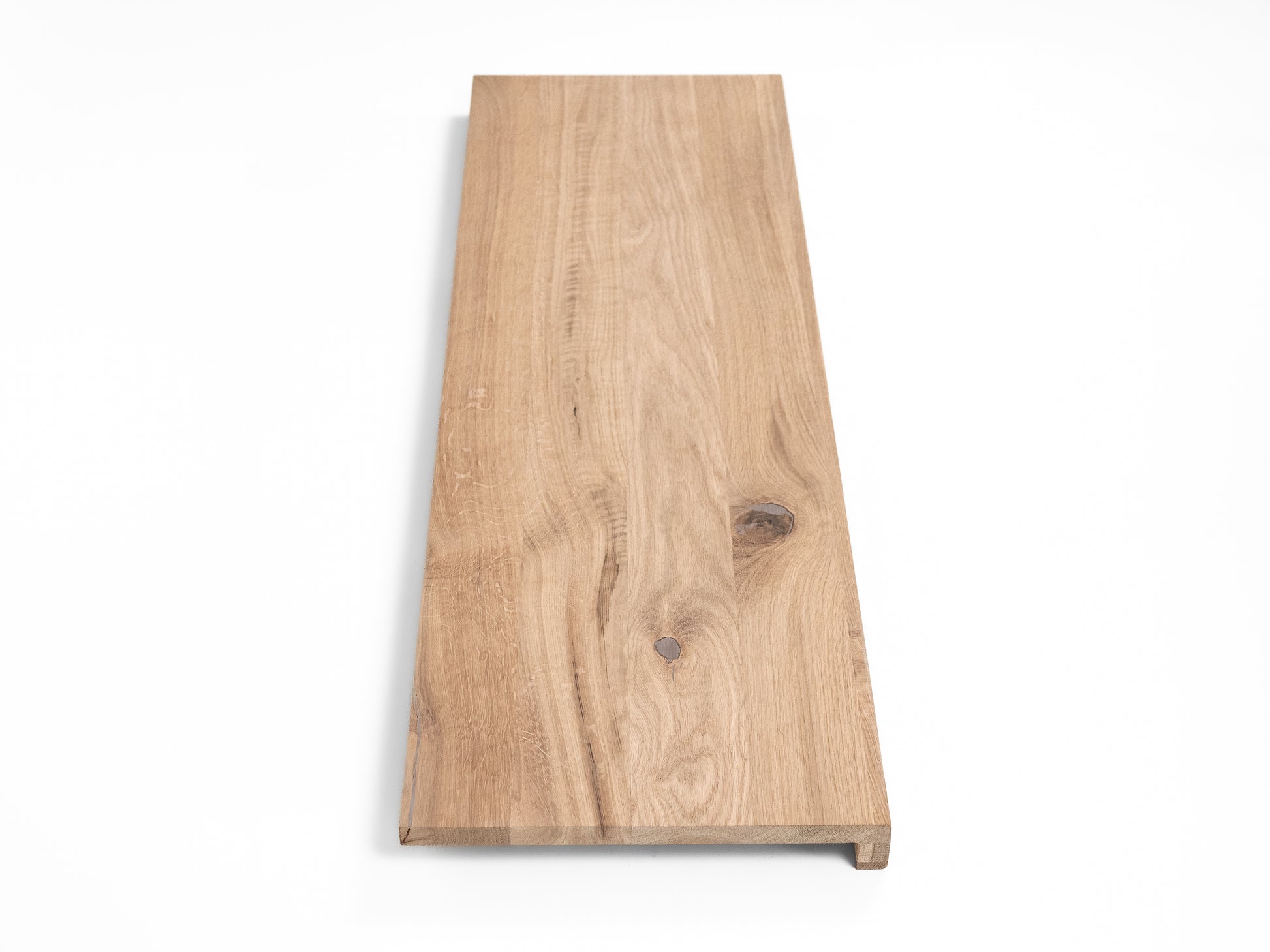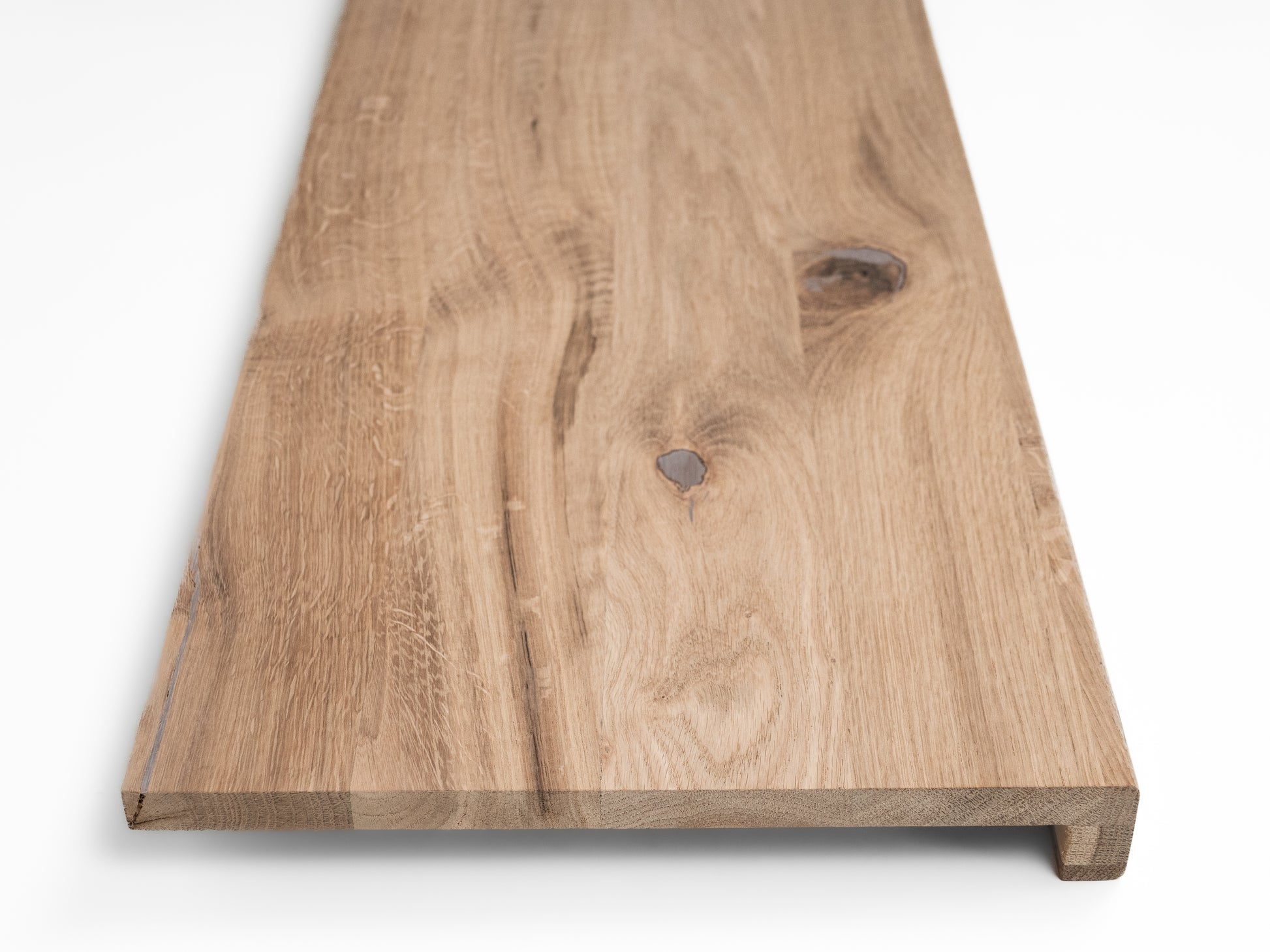Rustic oak means that natural features such as visible knots, filled imperfections, and shade differences are intentionally preserved. This grade highlights the authentic side of oak — warm, organic, and full of contrast. It’s ideal for stair treads, windowsills, shelves, or furniture where you want both durability and a genuine wood appearance.